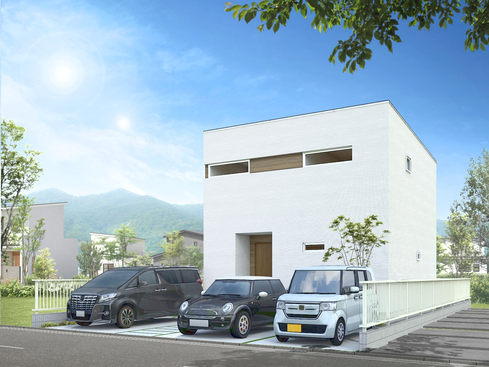 敷地面積152.65㎡(約46.17坪)のゆとりで、車3台駐車もOK。