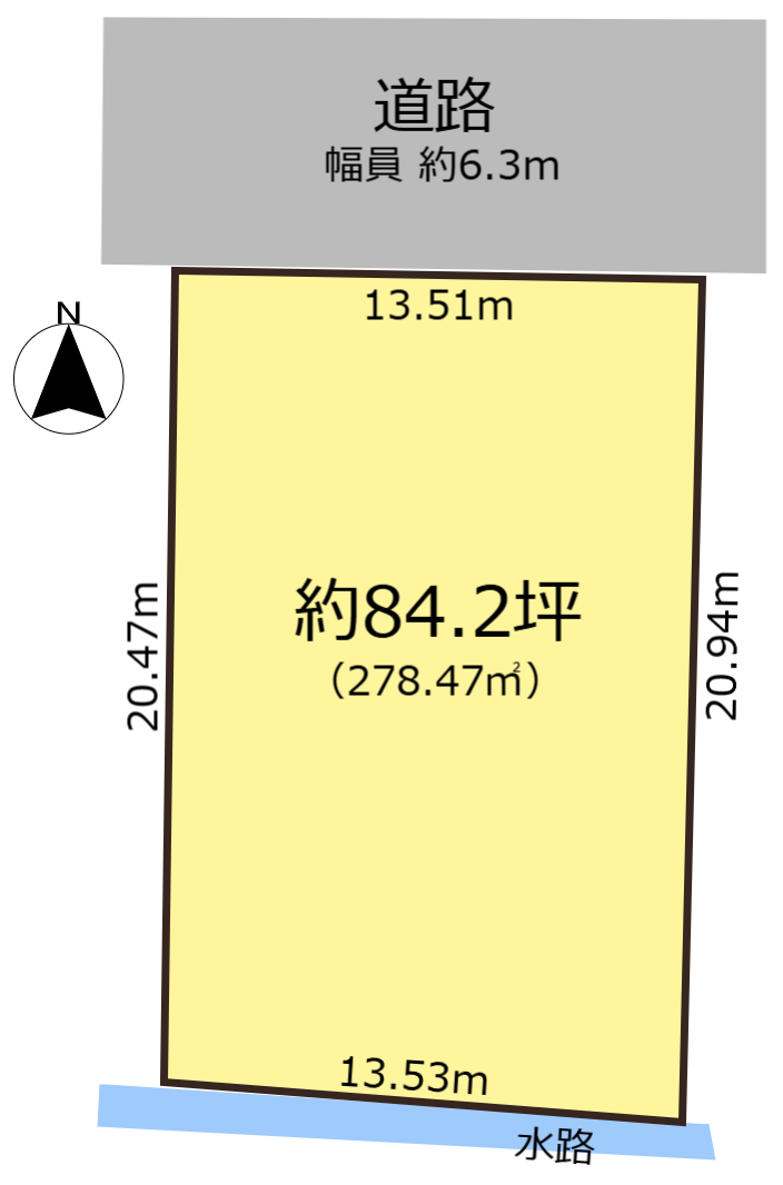 | 接道 | 公道 北側約6.3m 接面13.51m |